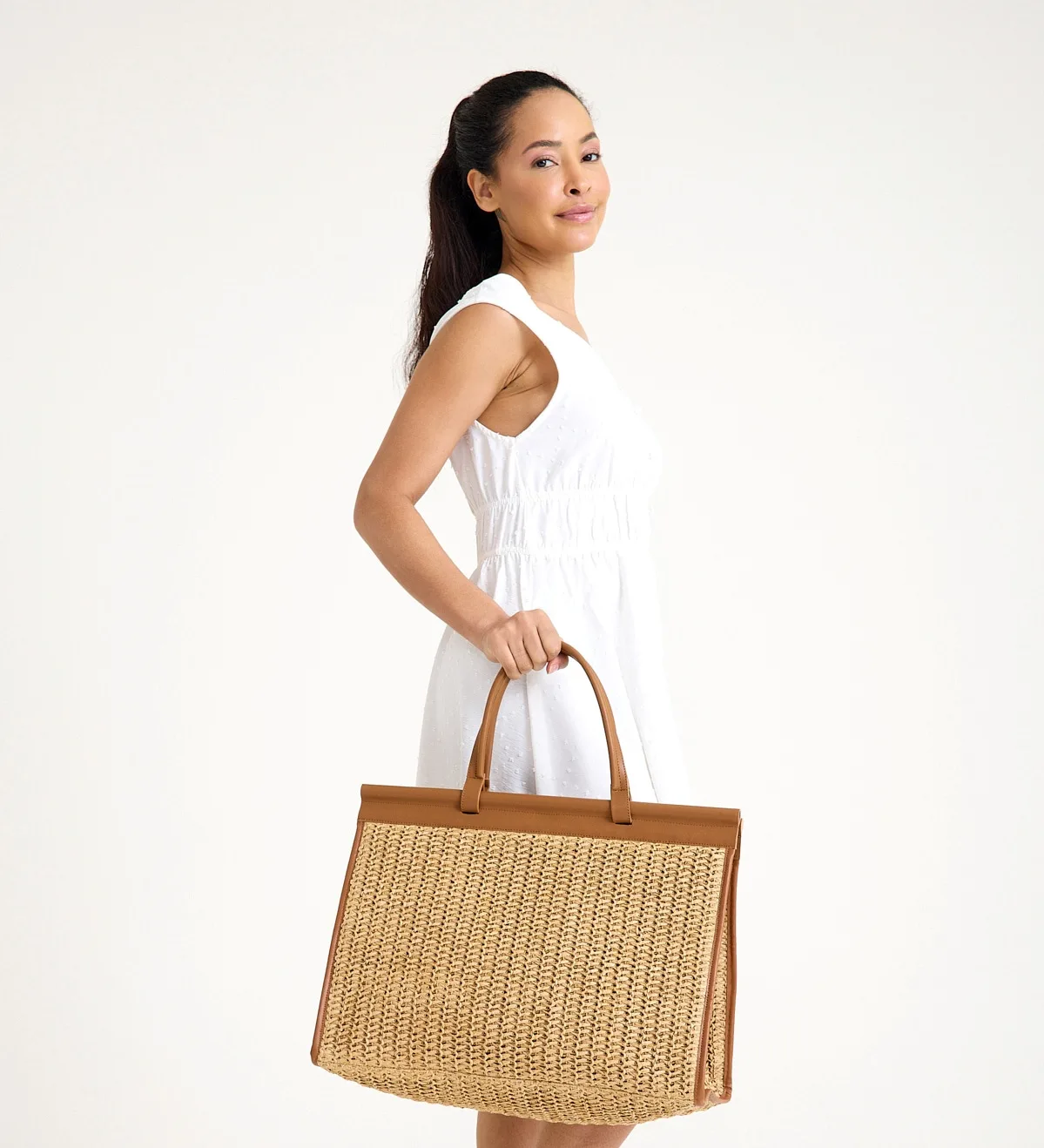 Alina Rafya Hasır Çanta Büyük Boy