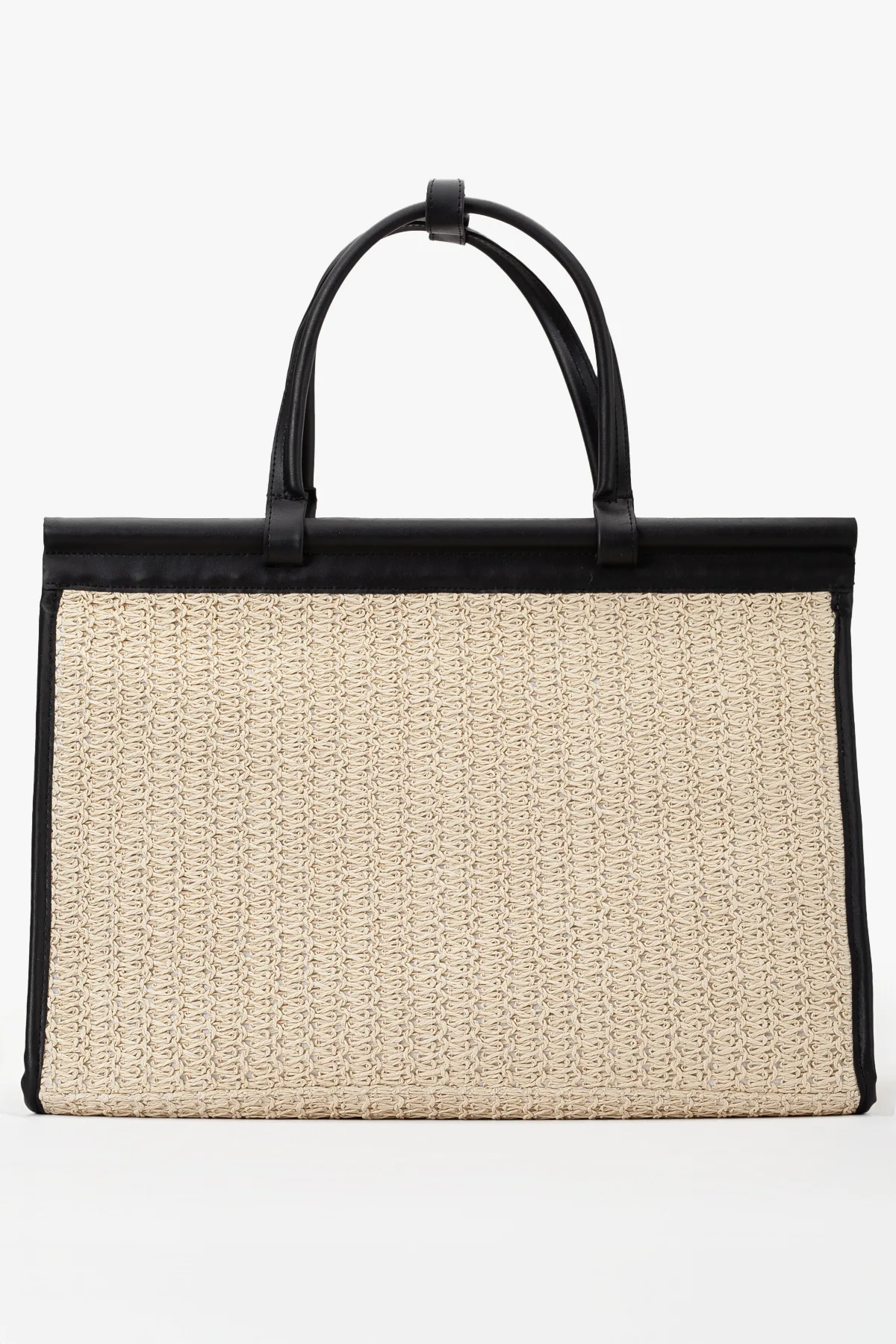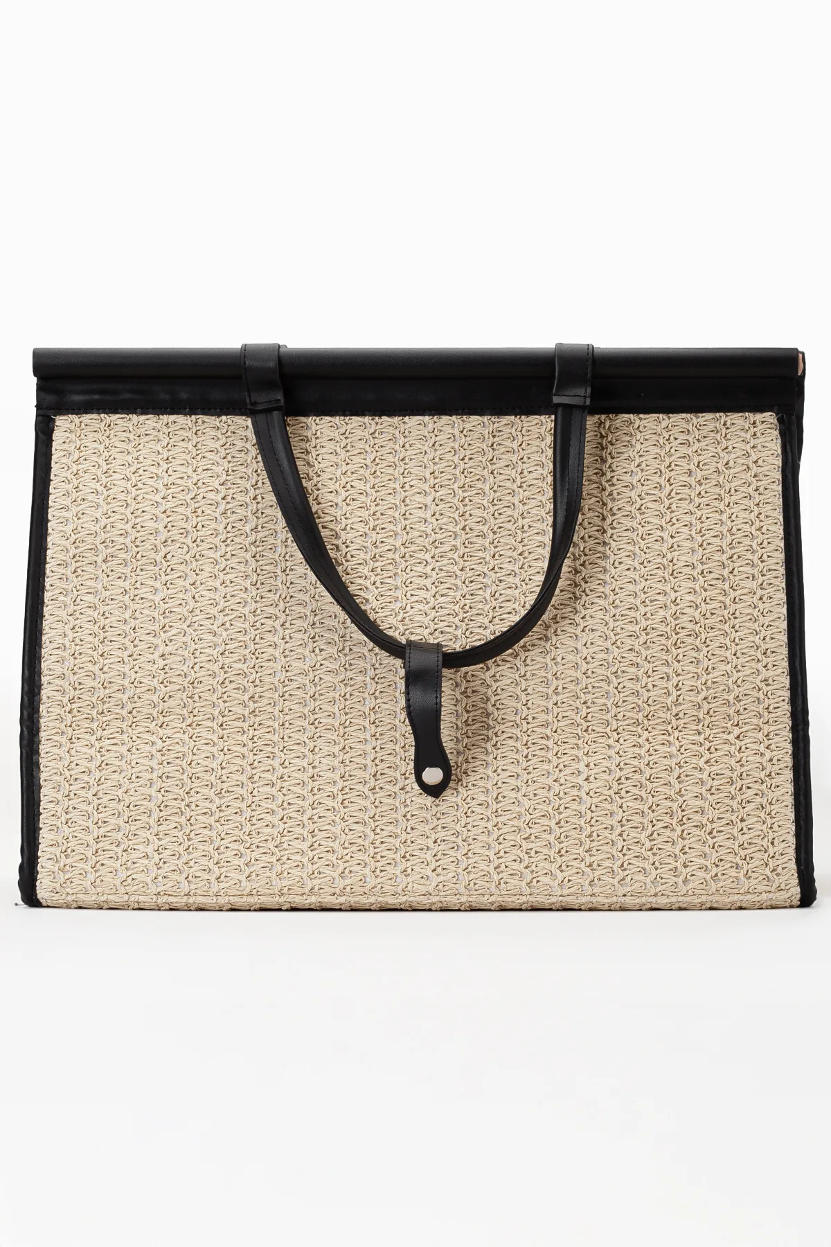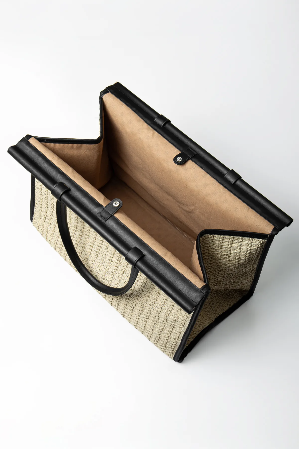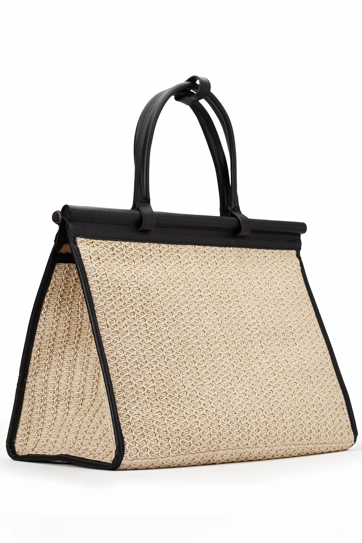 Alina Rafya Kağıt İp Hasır Omuz Çantası Krem Siyah O