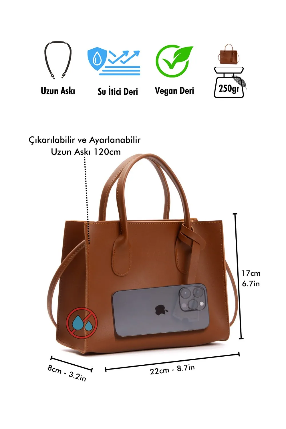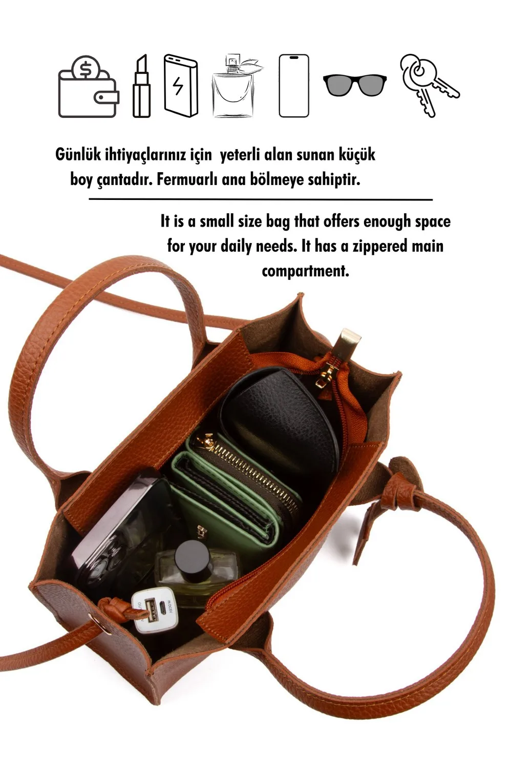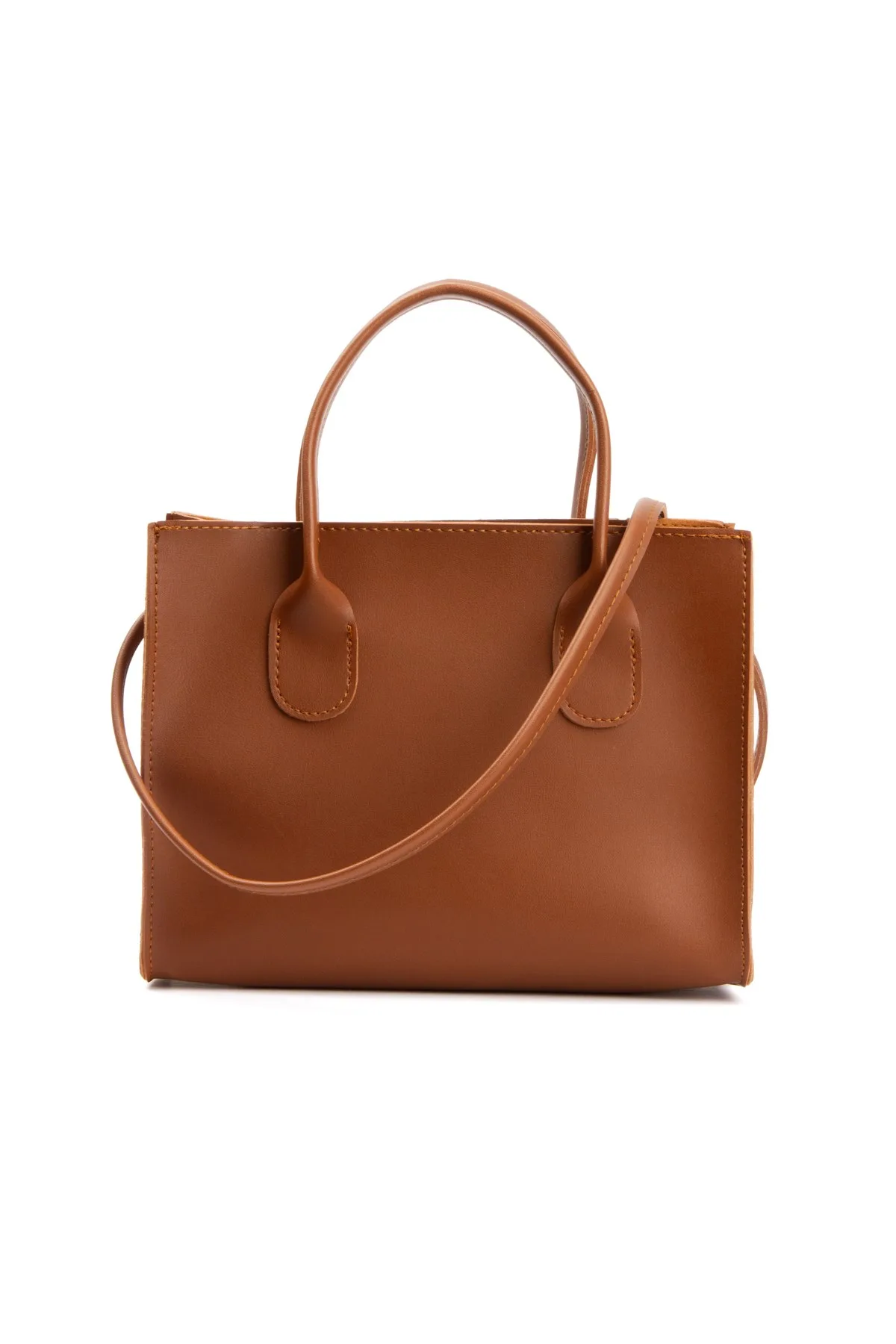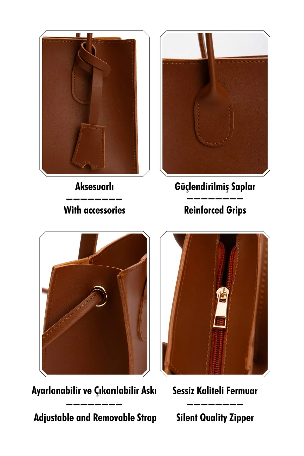 Ava Çapraz Ayarlanabilir Çıkarılabilir Askılı Fermuarlı El ve Omuz Çantası Taba