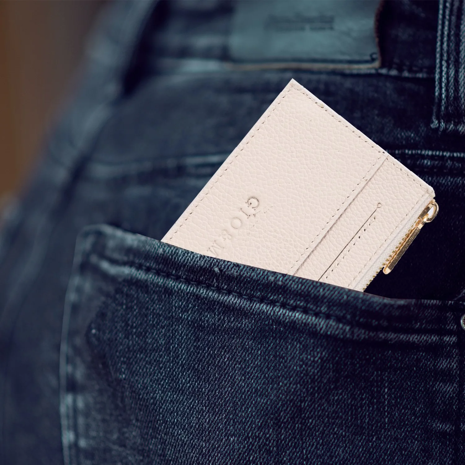 Davin Hakiki Deri Fermuarlı Kartlık Krem