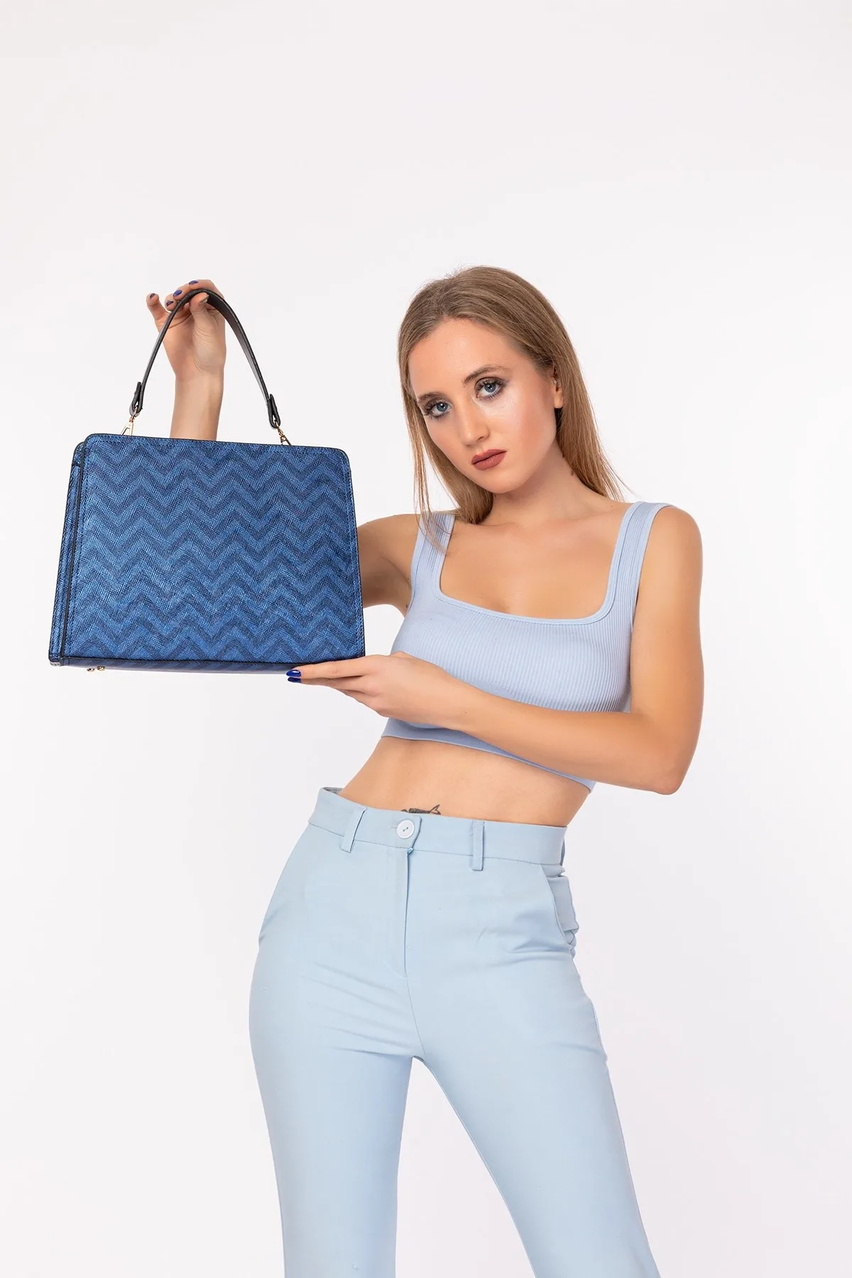 Elanor El ve Omuz Çantası Lacivert Zikzak