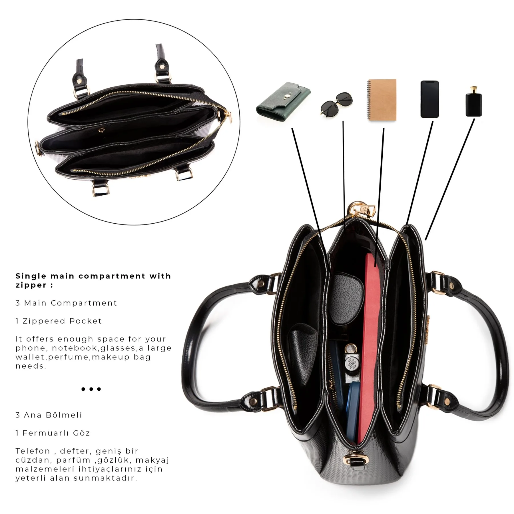 Gün içerisinde her an ihtiyaç duyduğunuz cep telefonuna ve cüzdanınıza özel fermuarlı bölme sayesinde hızlıca ulaşım sağlayabilirsiniz. Tam boy açılan ana fermuar sayesinde evrak, tablet, ajanda gibi eşyalarınızı kolaylıkla yerleştirebilir, düşmelerine engel olabilirsiniz. 3 farklı bölmesi bulunan çantanın fermuarı sayesinde daha küçük boyutlu gözükmektedir.