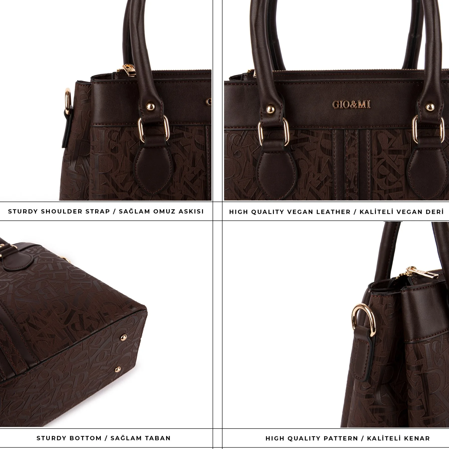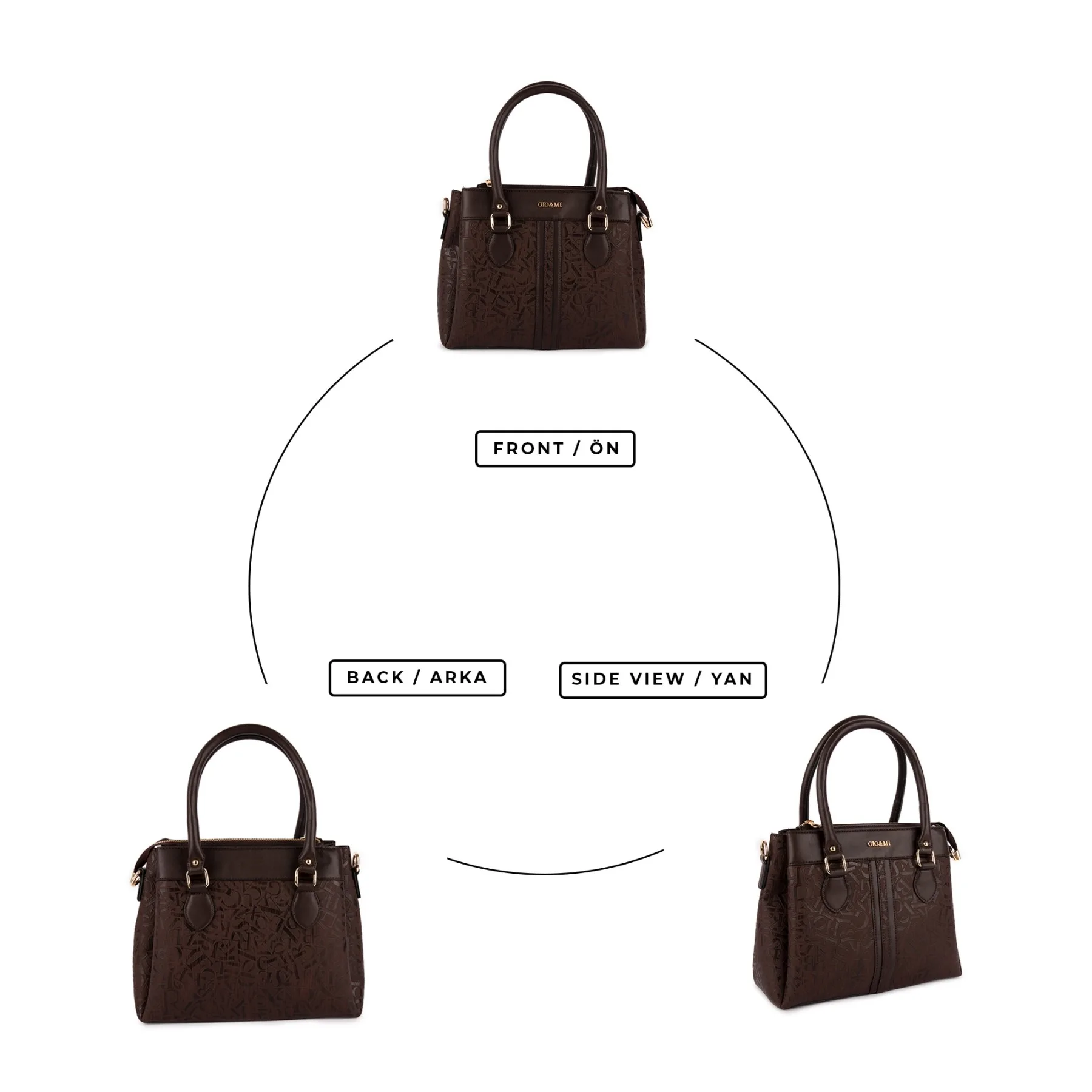 Elvin El ve Omuz Çantası Yazılı Kahverengi