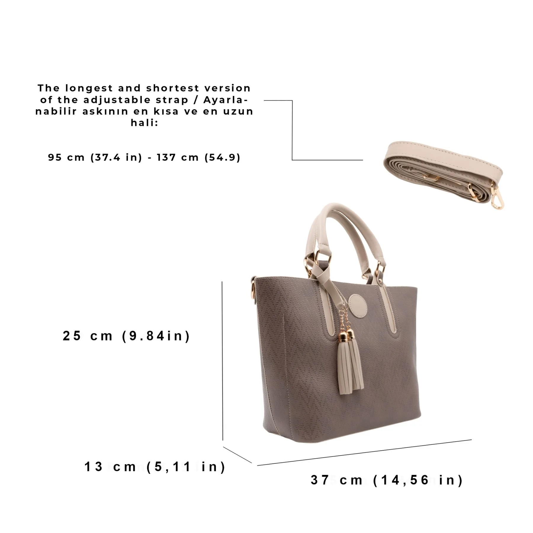 El ve Omuz çantası olarak kullanılabilir. Askısı mevcuttur.