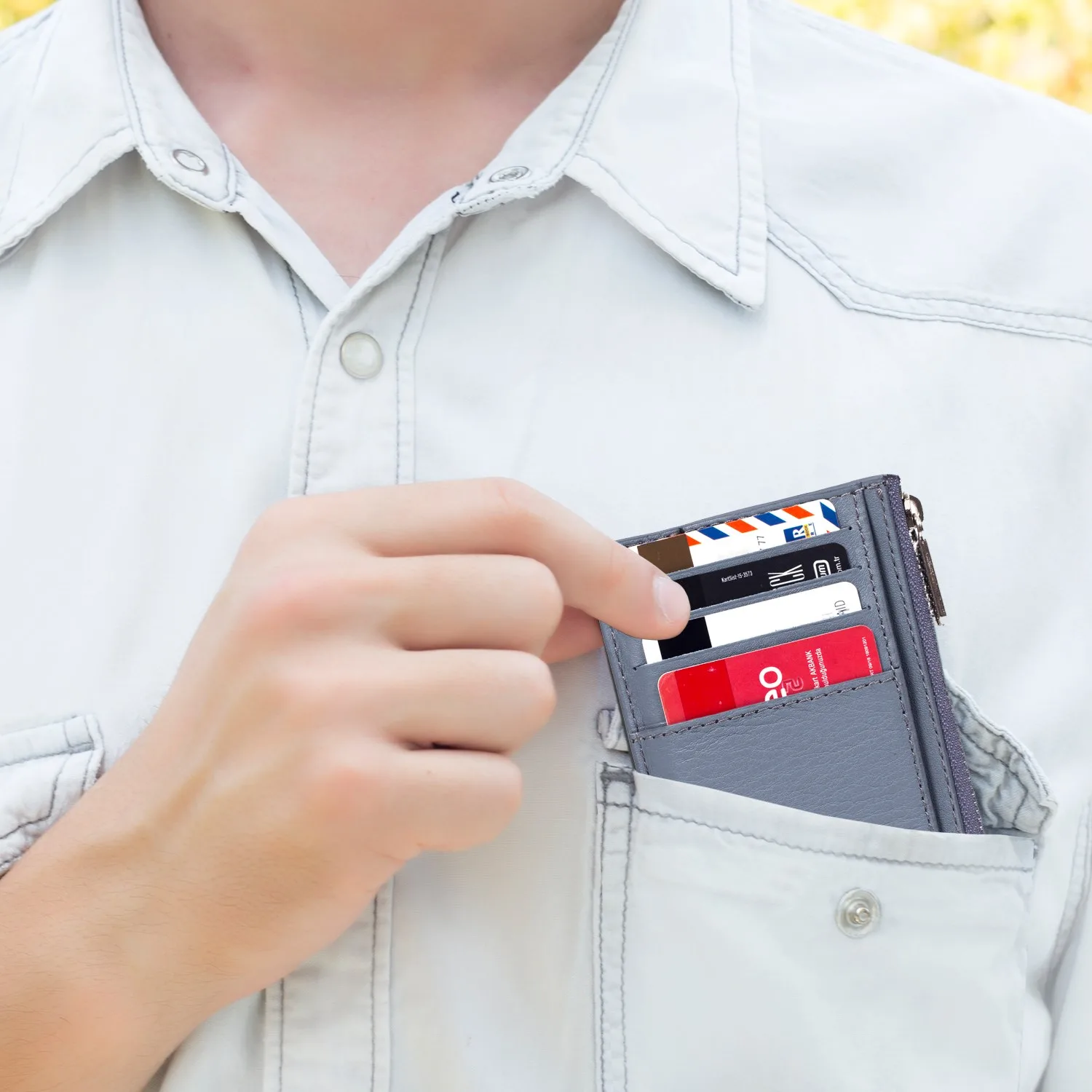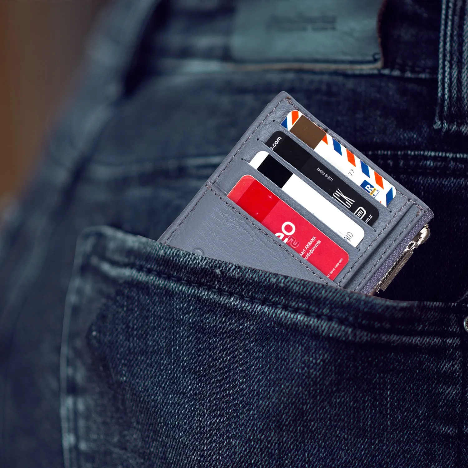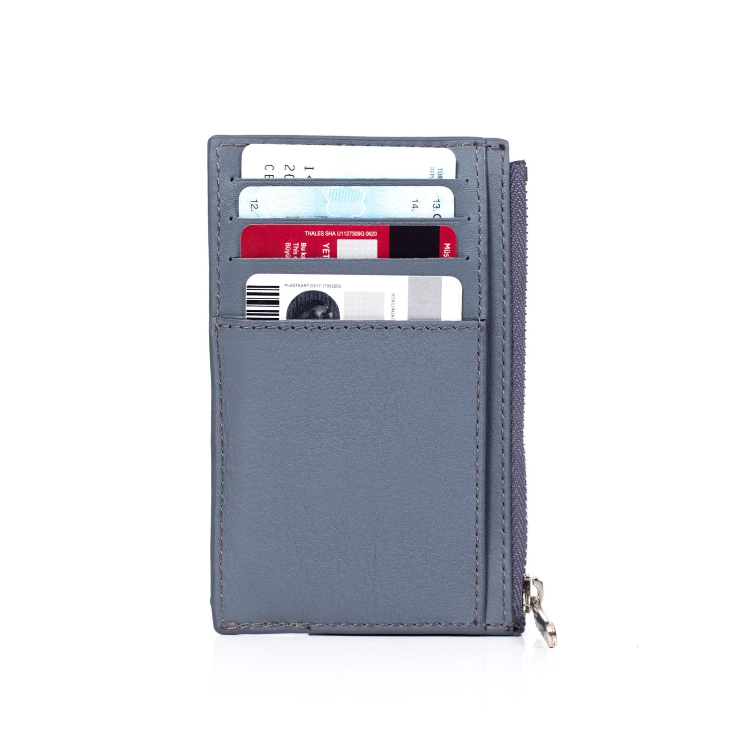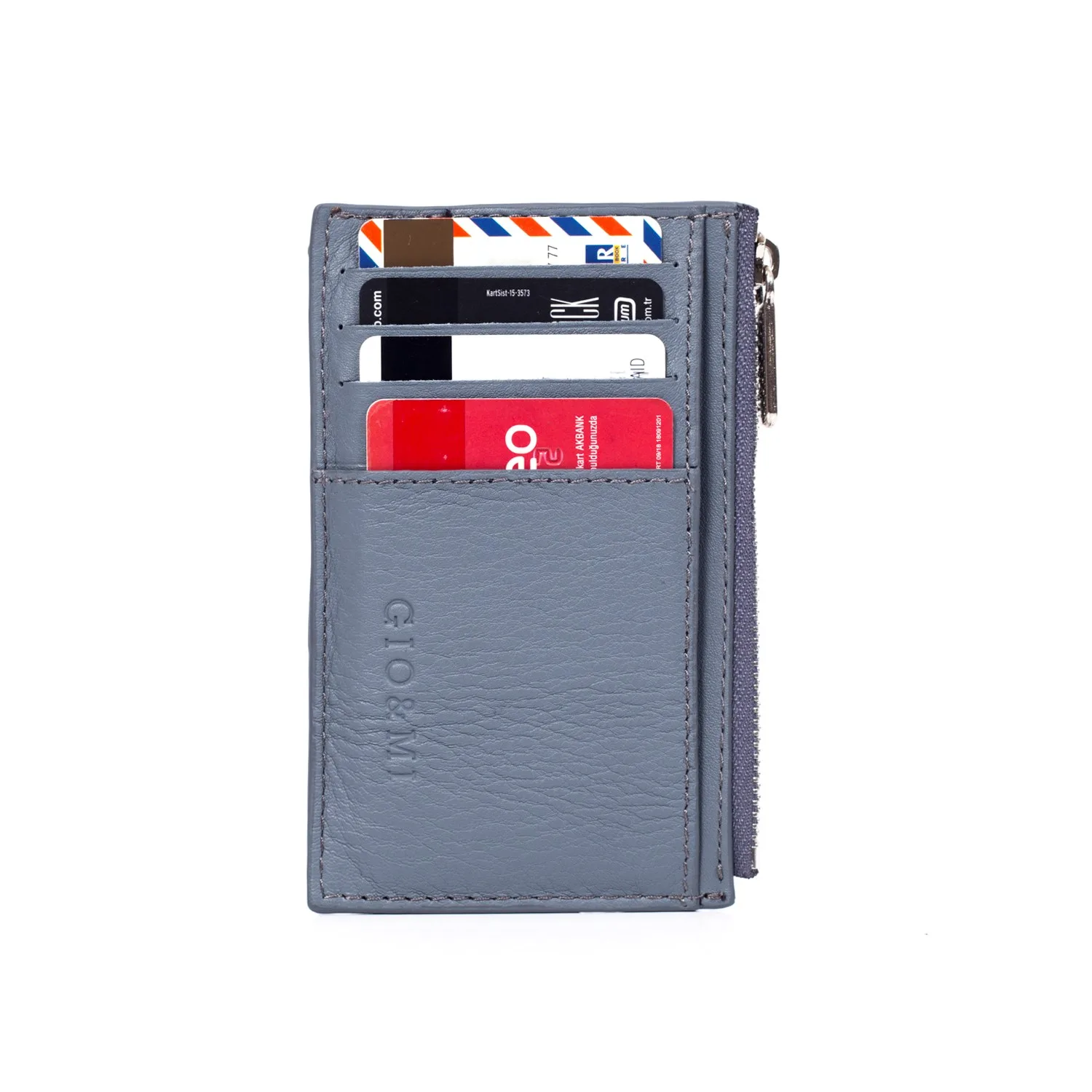 Glorya Hakiki Deri Fermuarlı Kartlık Gri Doğal