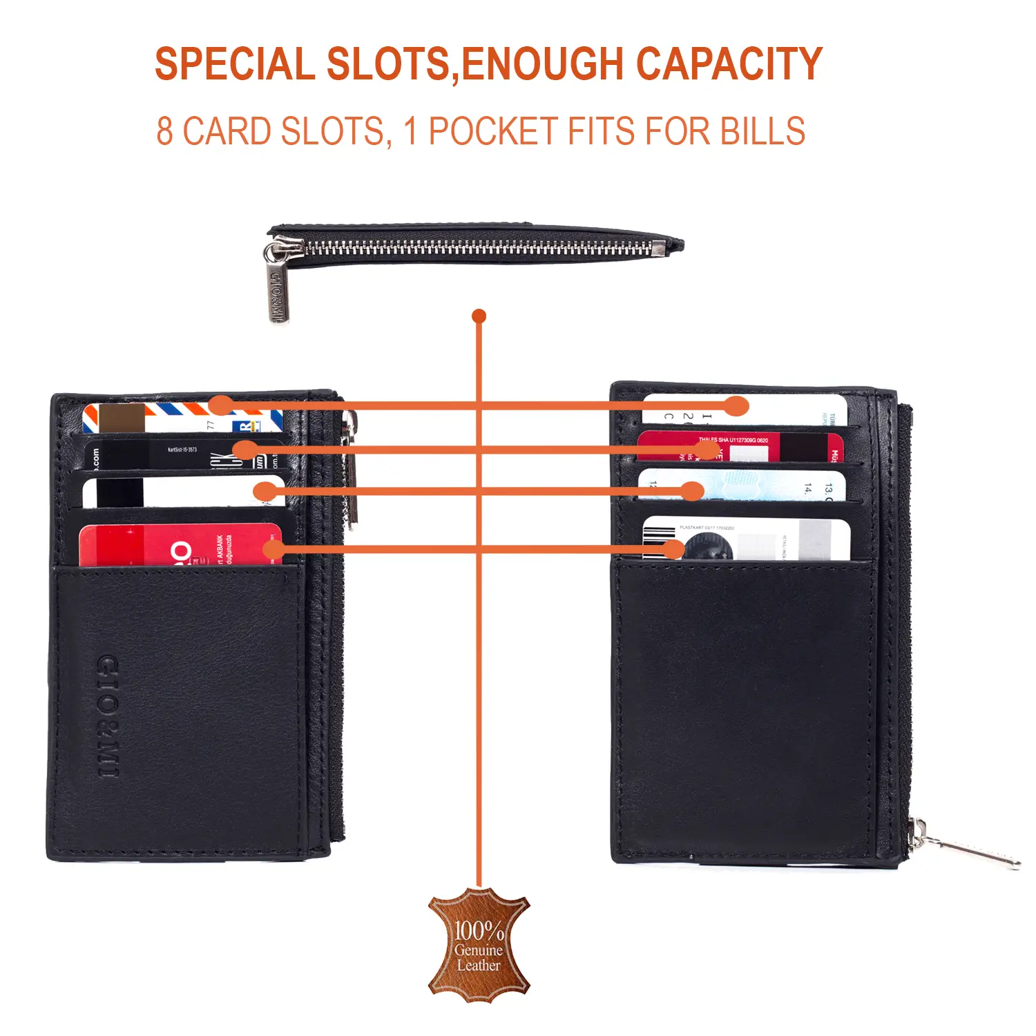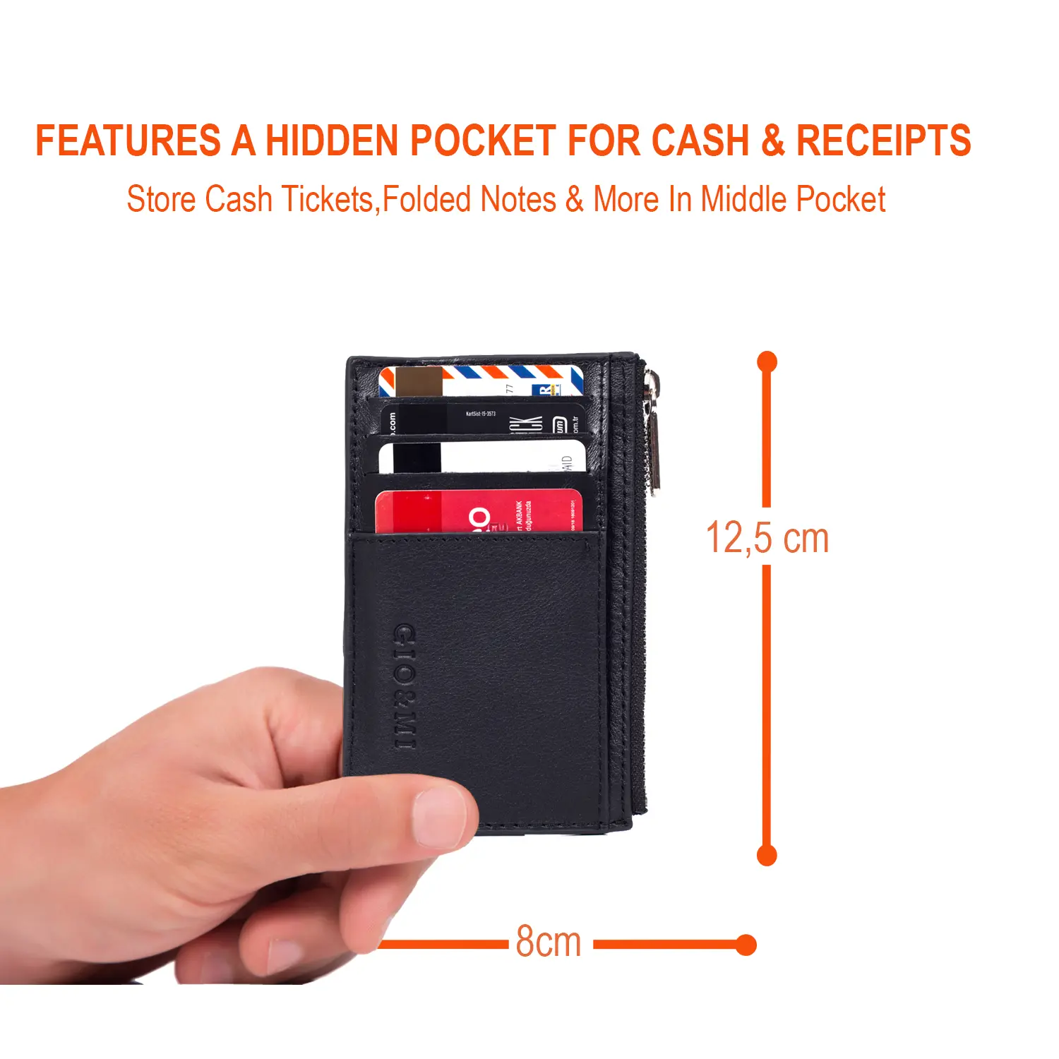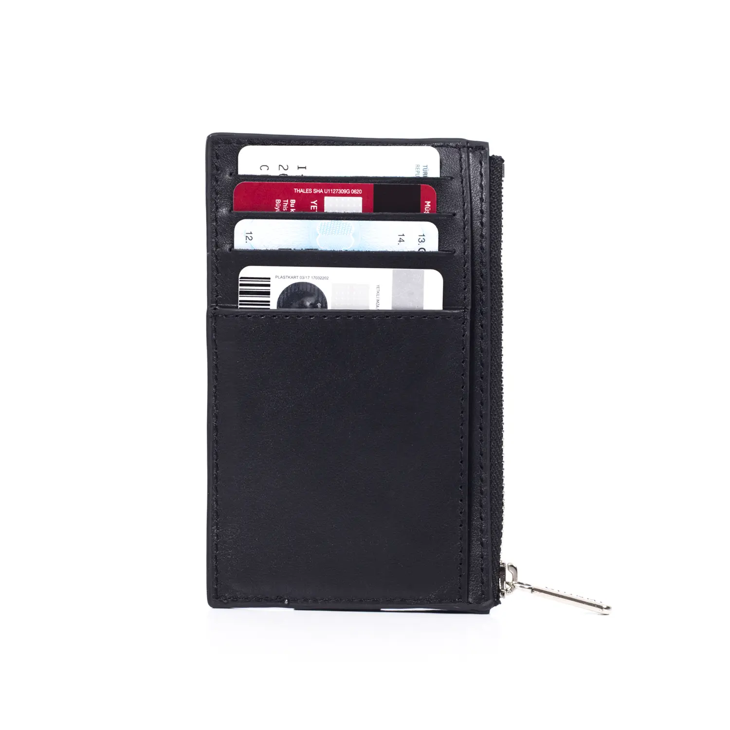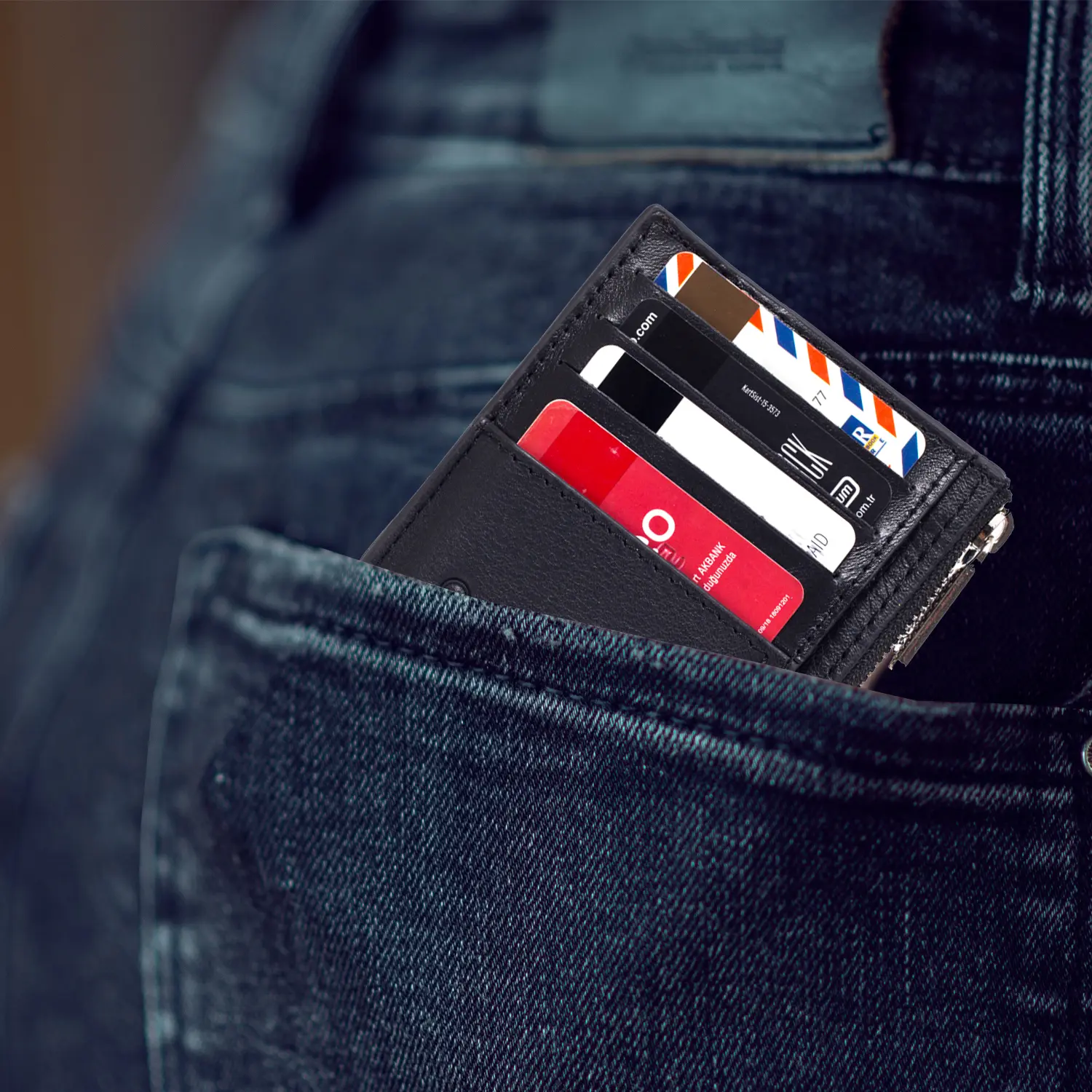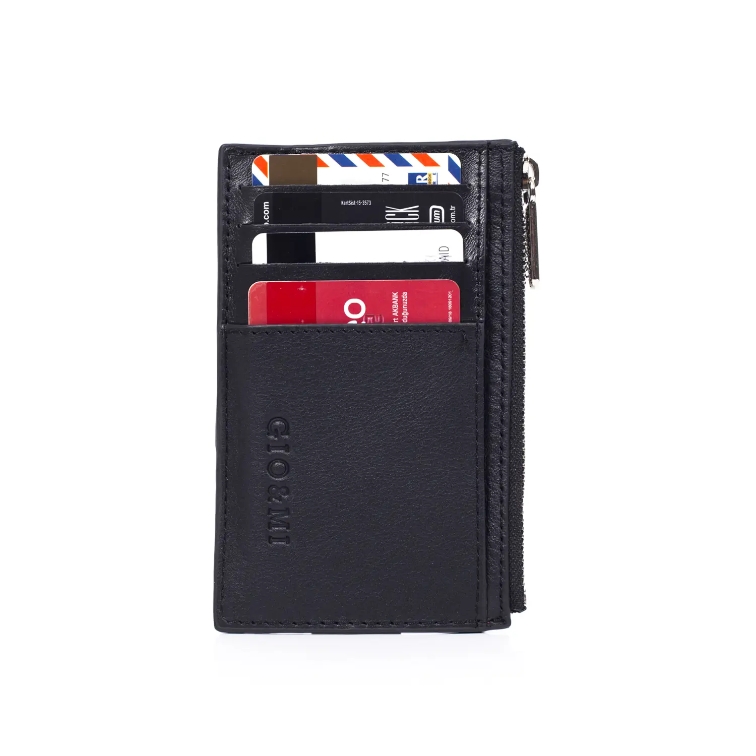 Glorya Hakiki Deri Fermuarlı Kartlık Siyah