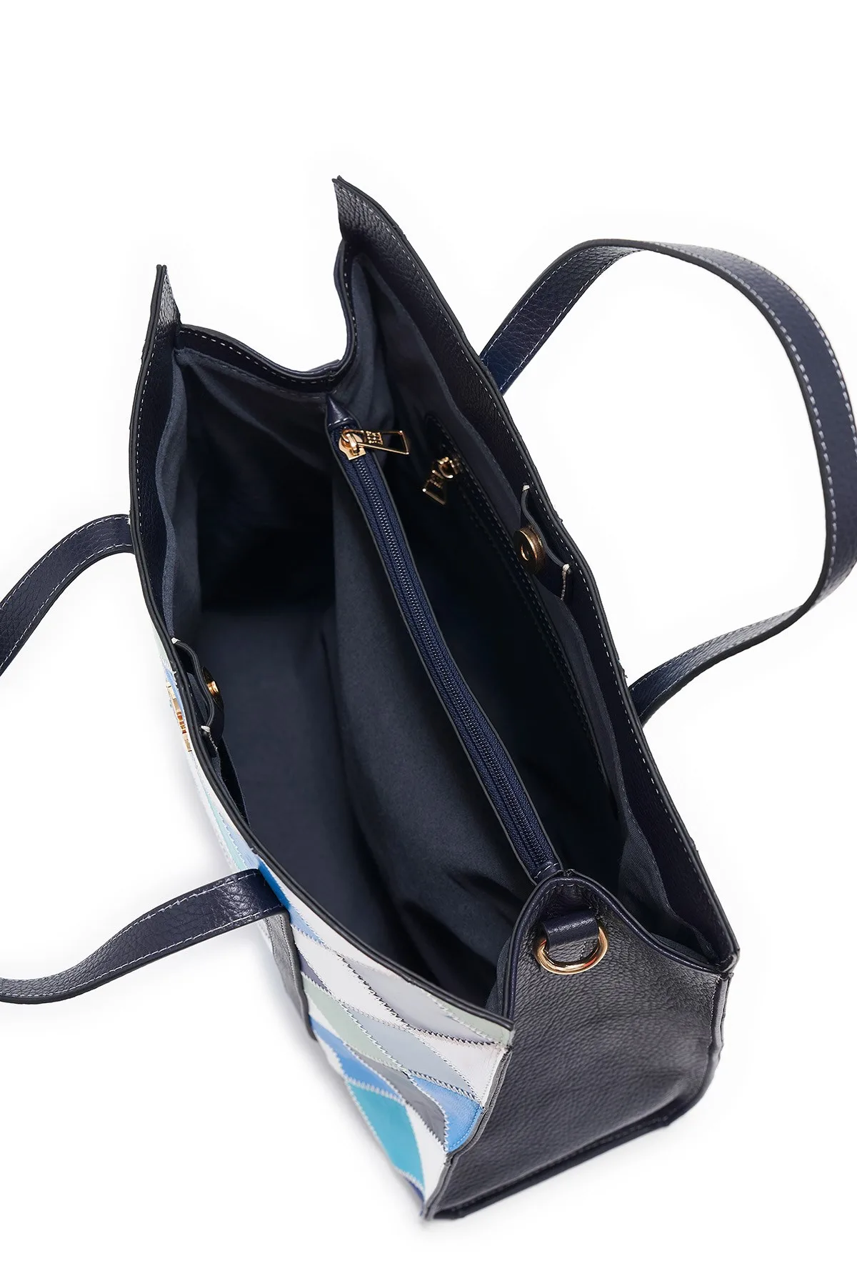 Kavya Omuz ve El Çantası Hakiki Deri Lacivert Multi