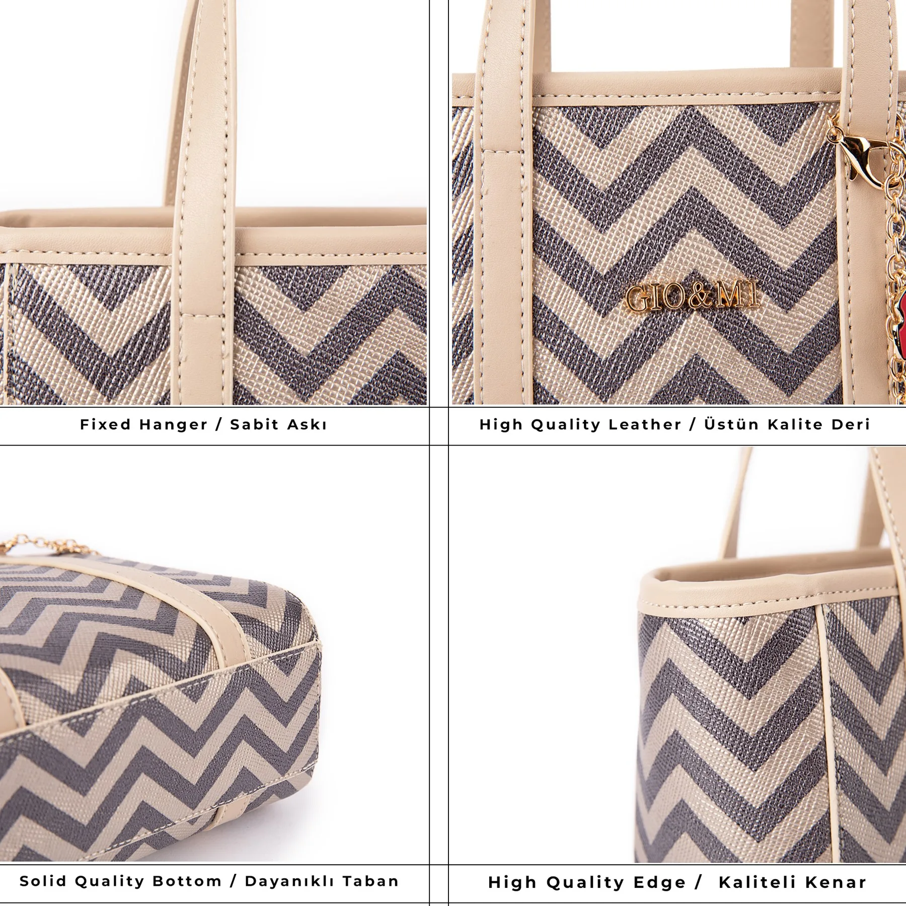 Noa El ve Çapraz Çanta Açık Altın Zikzak