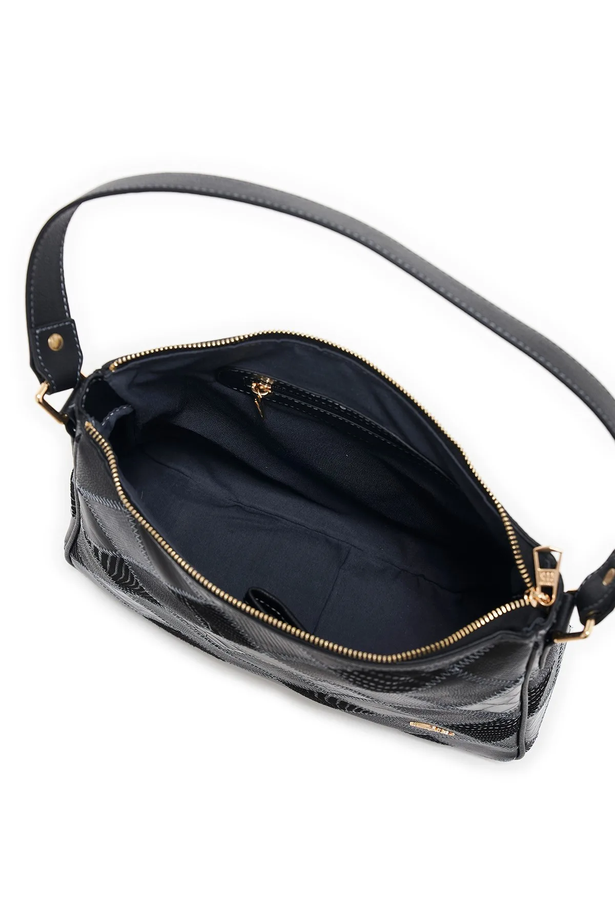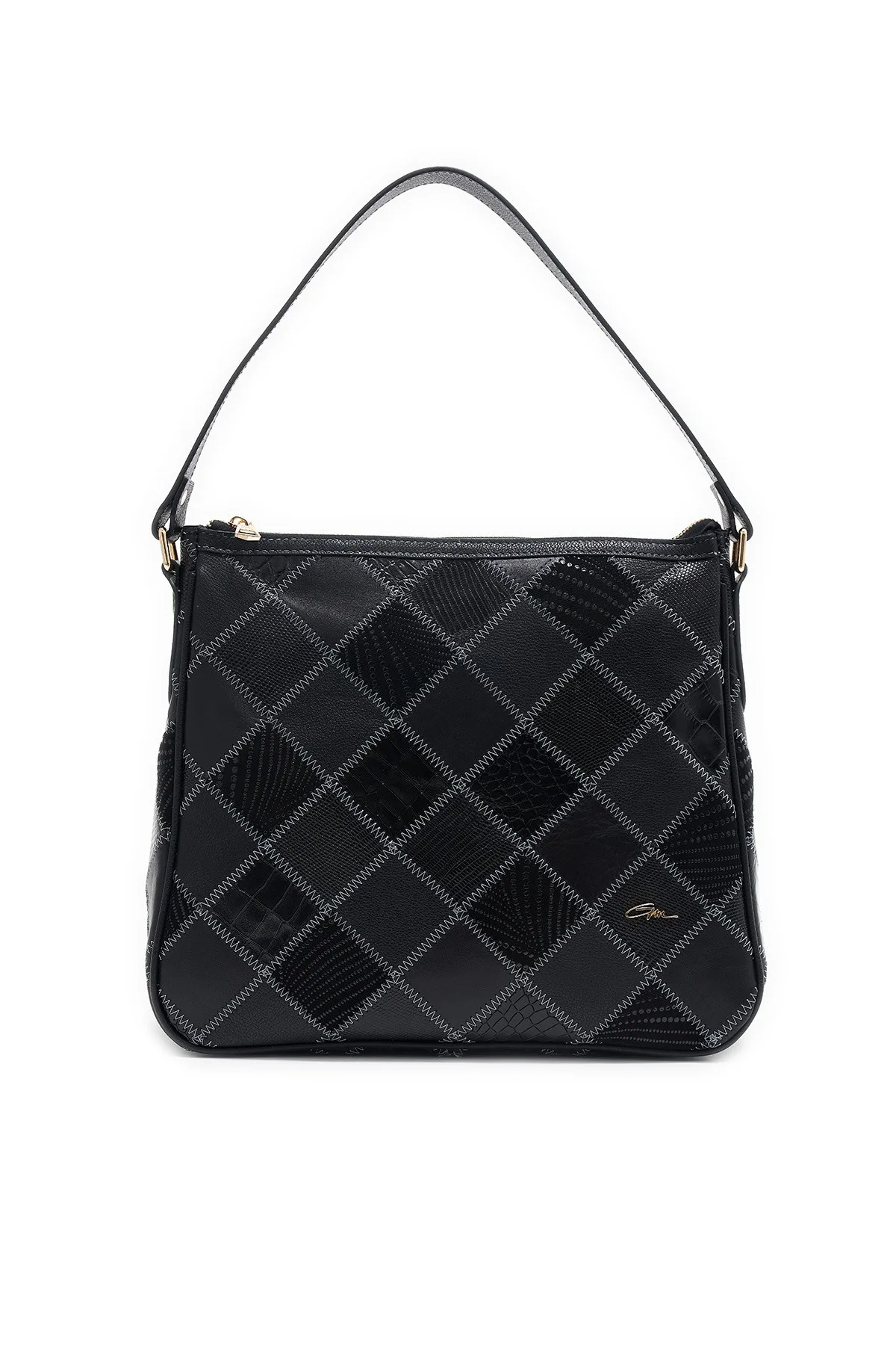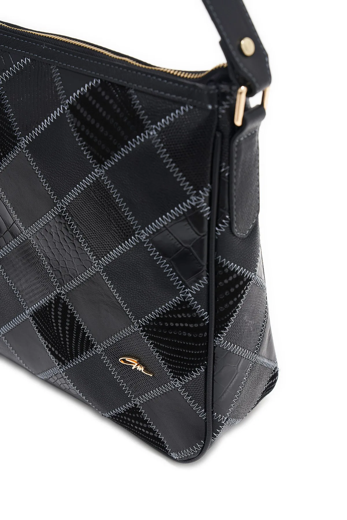 Pari Omuz ve Çapraz Çanta Hakiki Deri Siyah Desenli