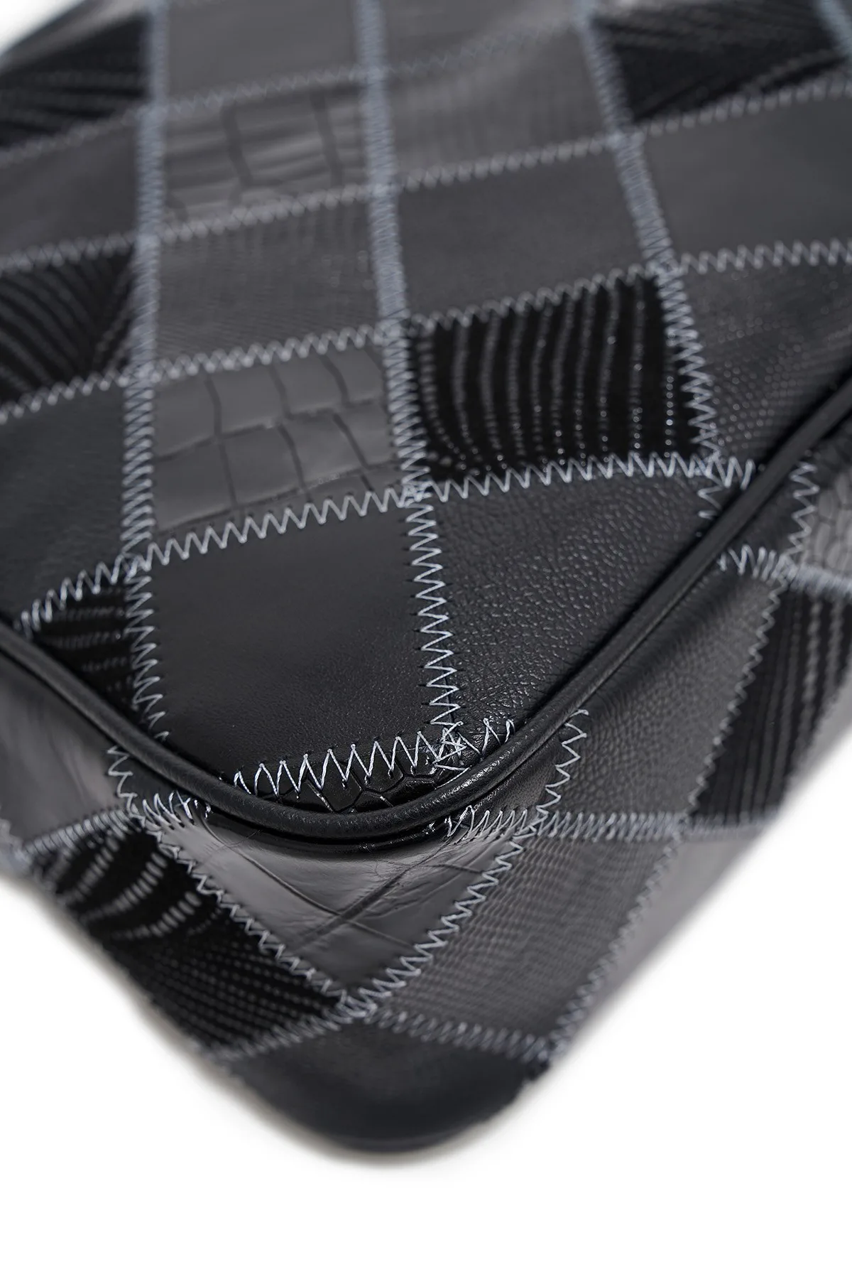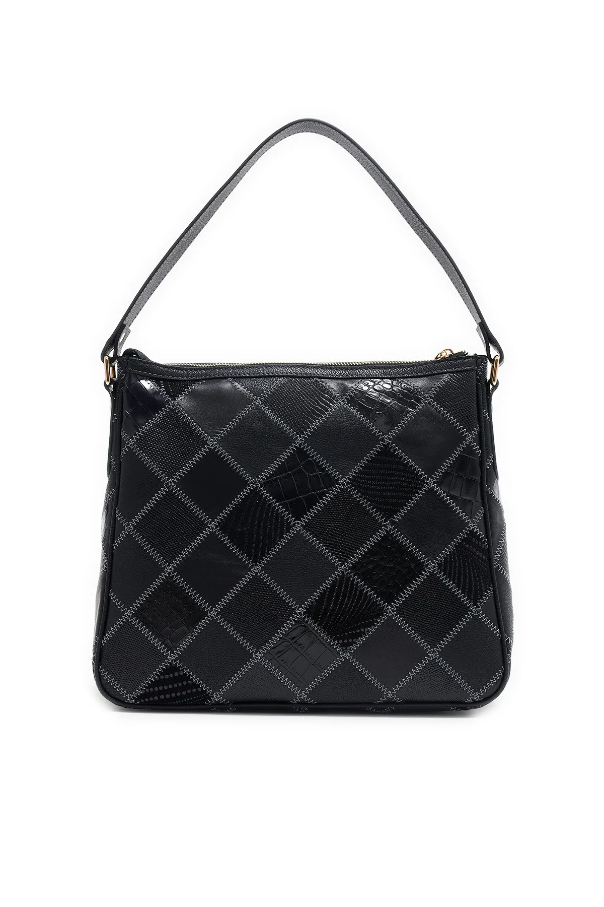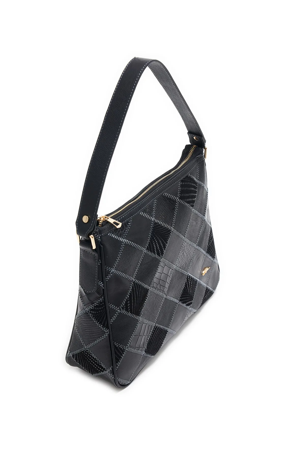 Pari Omuz ve Çapraz Çanta Hakiki Deri Siyah Desenli