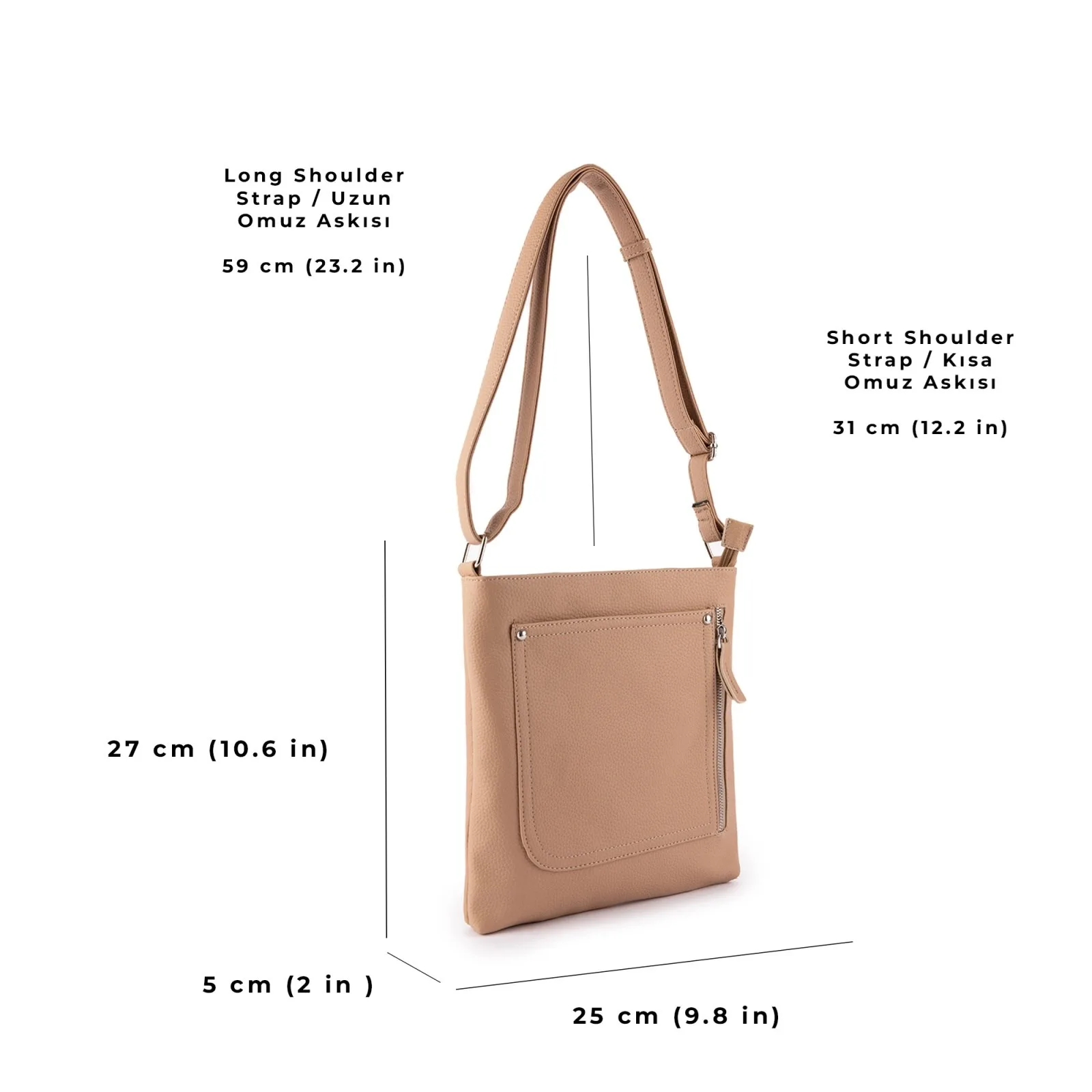 Birinci sınıf malzemelerden üretilen çantamız, uzun süreli kullanım için idealdir. Aynı zamanda, geniş iç bölmeleri ve yan cepleri sayesinde eşyalarınızı düzenli bir şekilde taşımanızı sağlar. Cep telefonundan cüzdanınıza, anahtarlarınızdan makyaj malzemelerinize kadar birçok eşyanızı çapraz çantanızda güvenle saklayabilirsiniz.