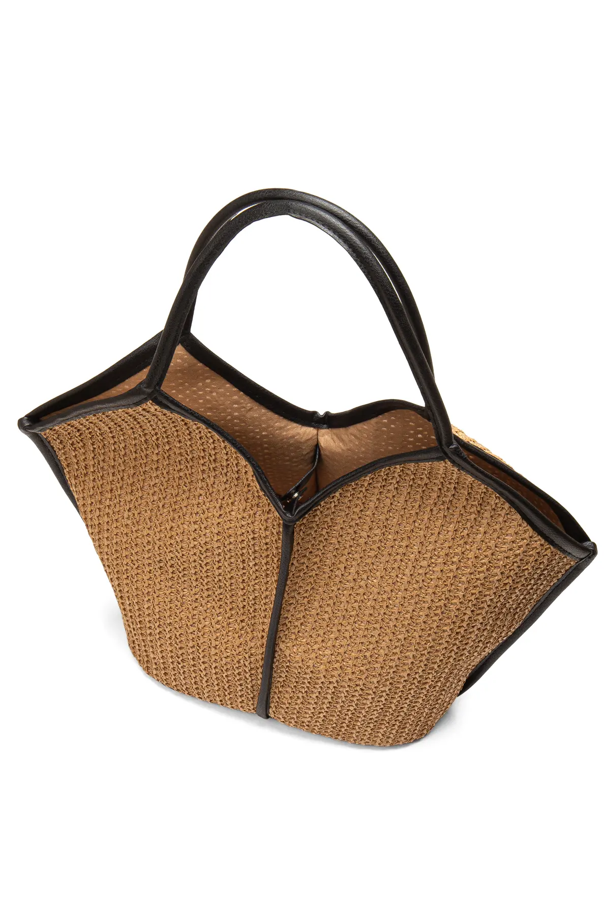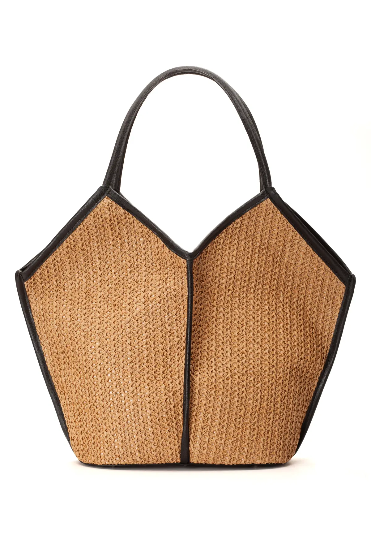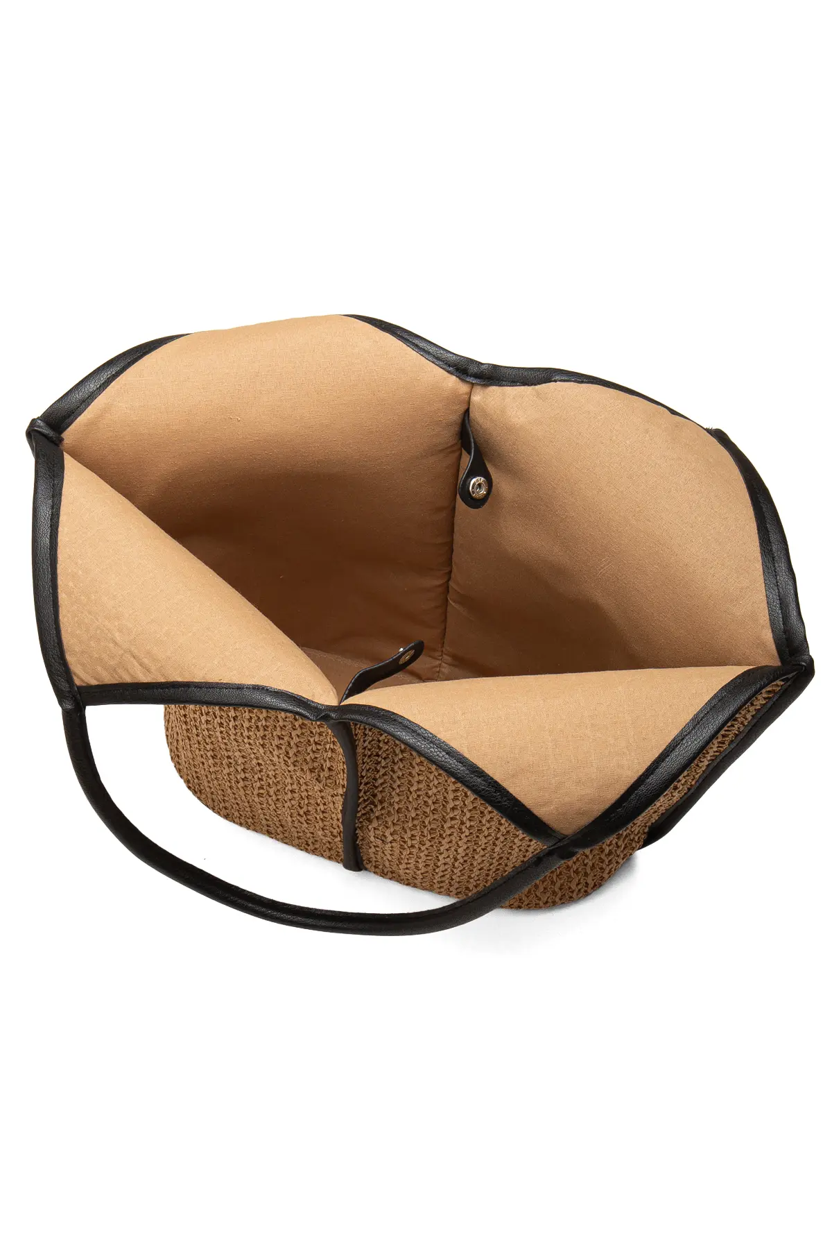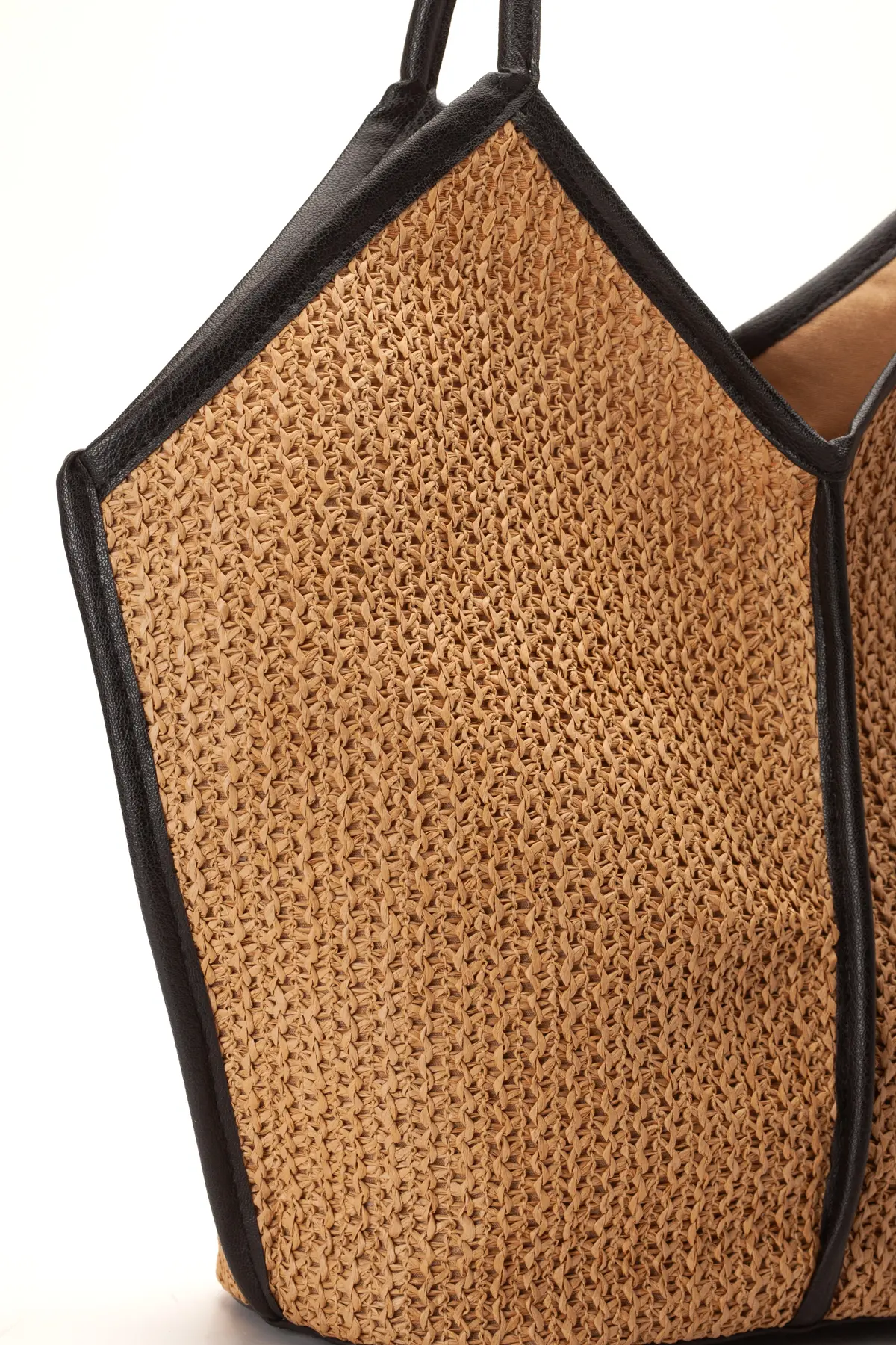 Tatum Rafya Kağıt İp Hasır Omuz Çantası Bej Siyah X