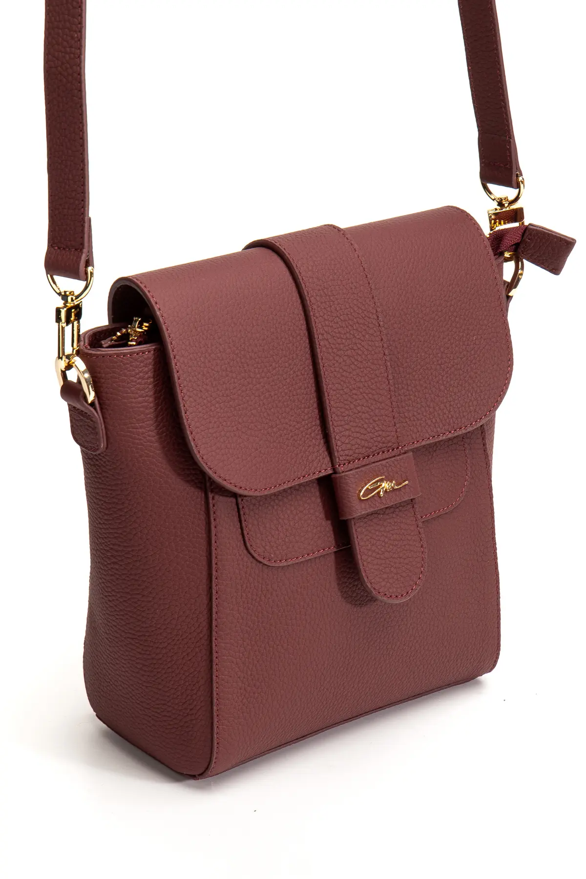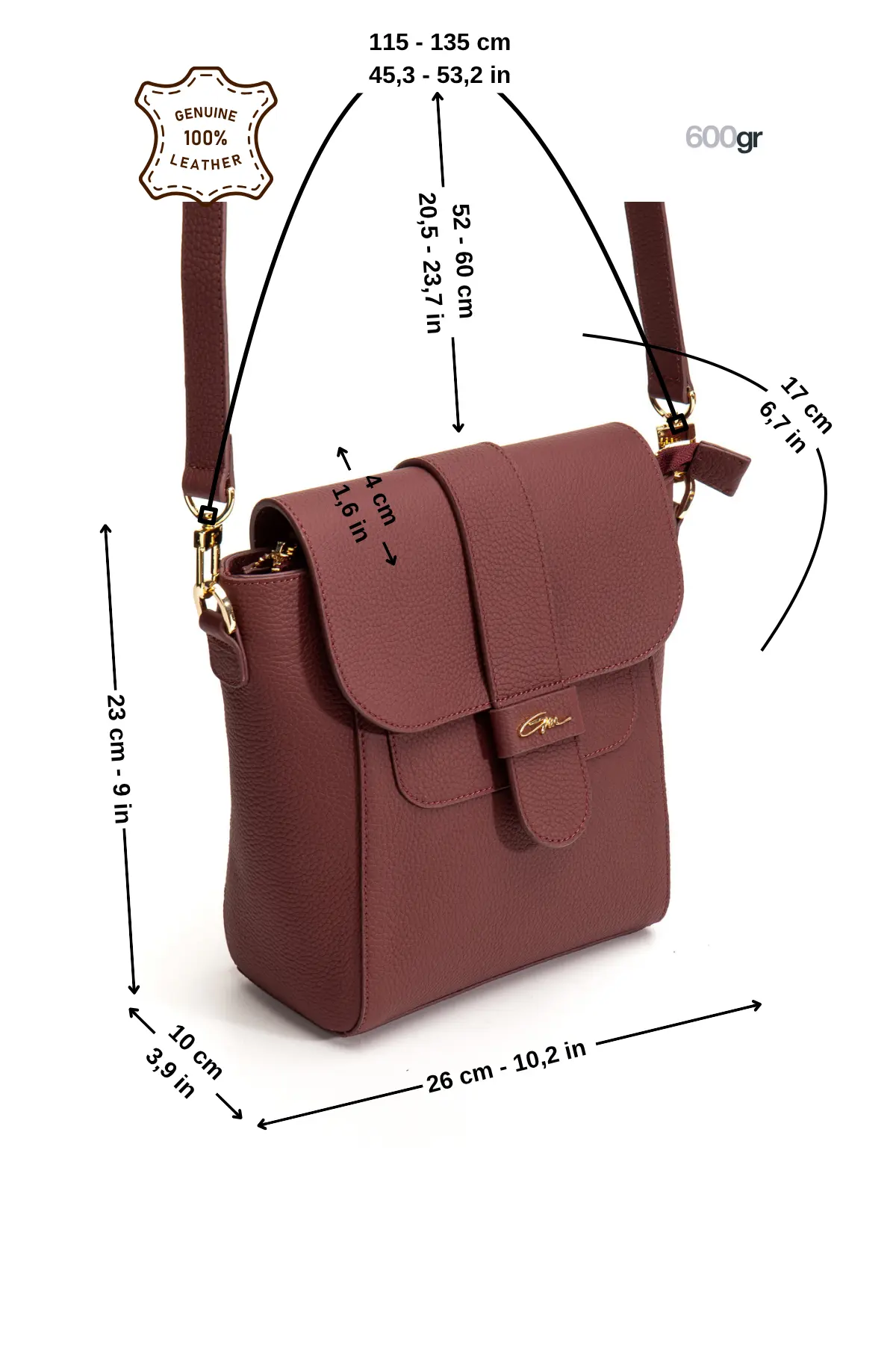 Tegan Hakiki Deri Kadın Omuz Ve Çapraz Çanta Bordo