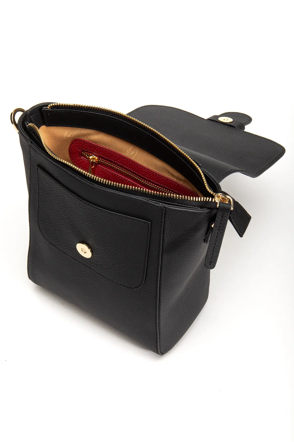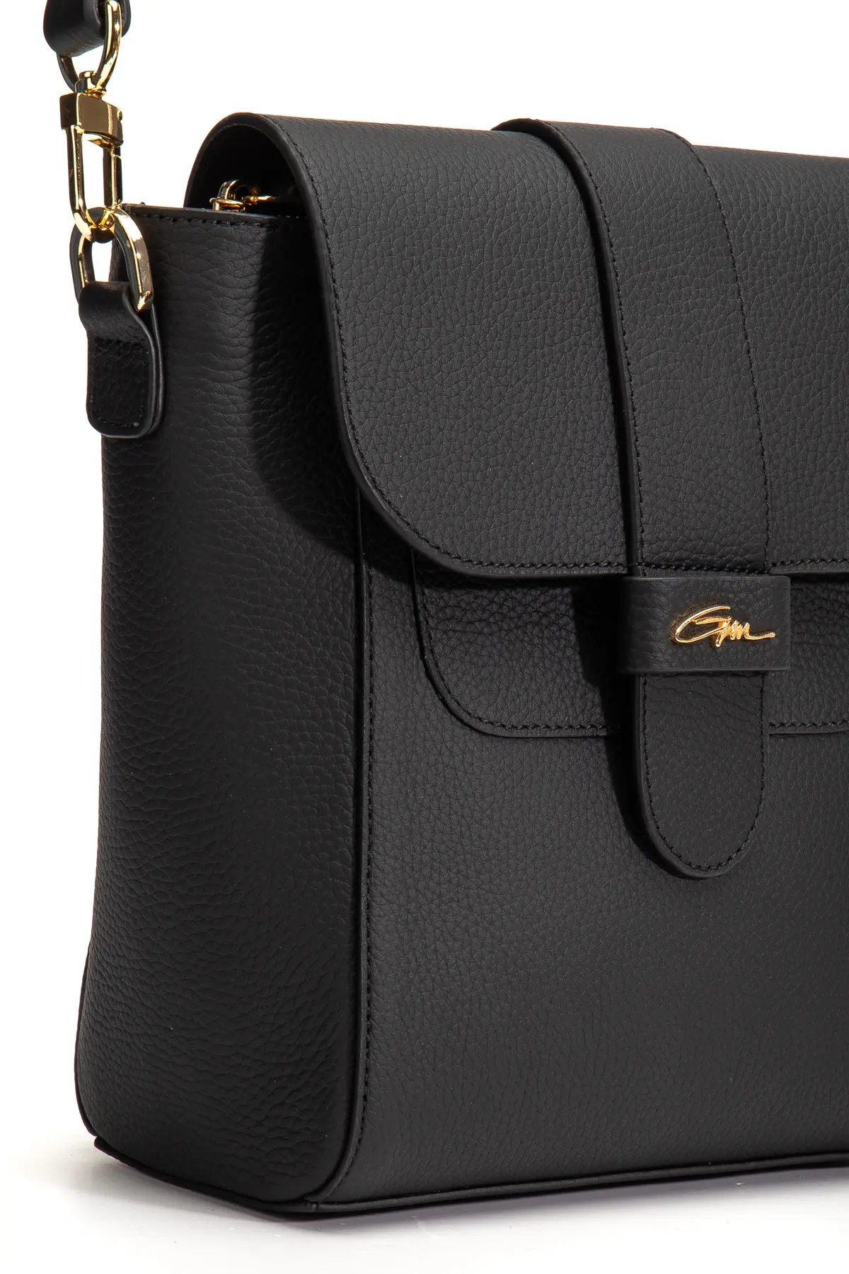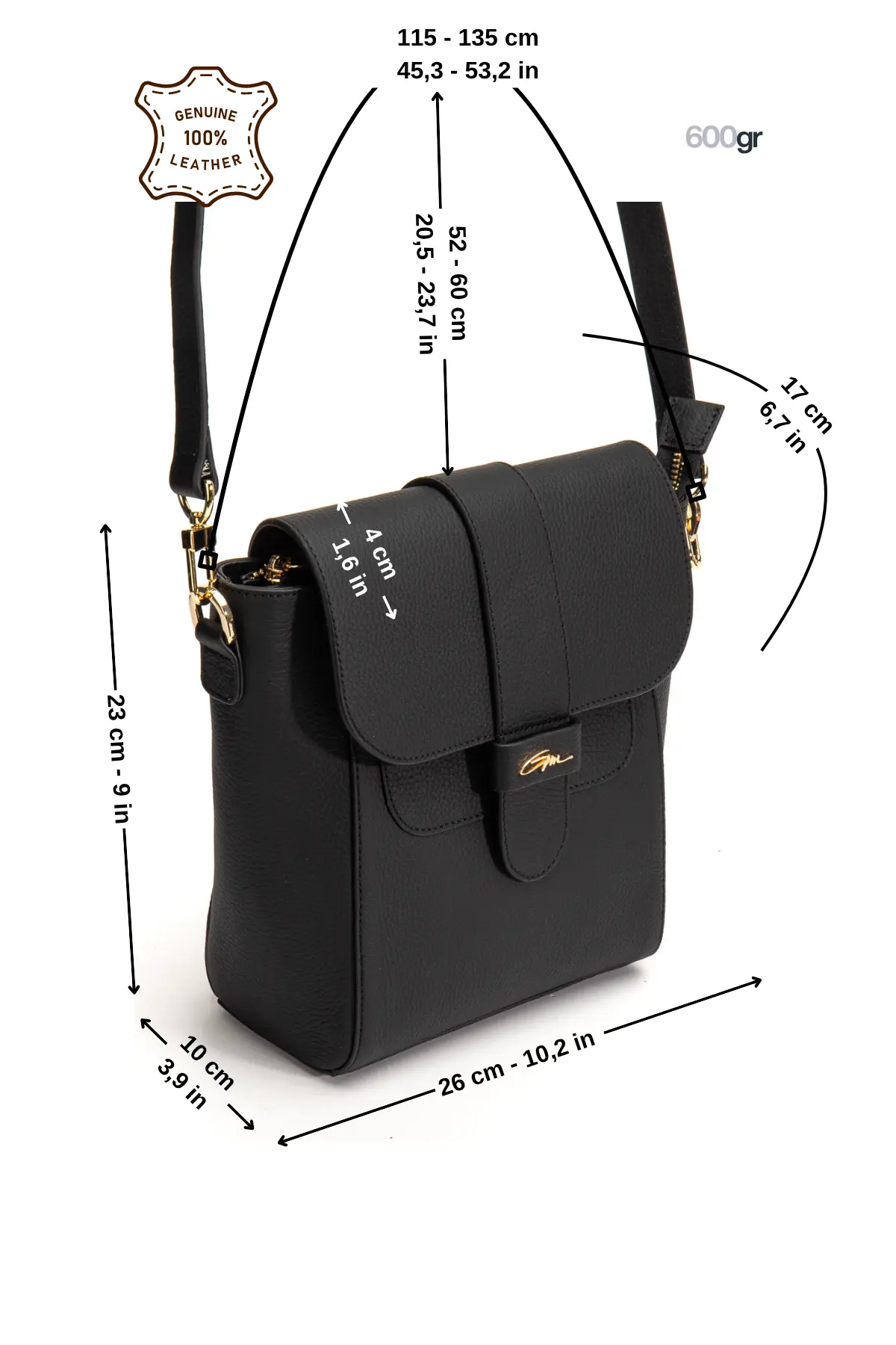 Tegan Hakiki Deri Kadın Omuz Ve Çapraz Çanta Siyah