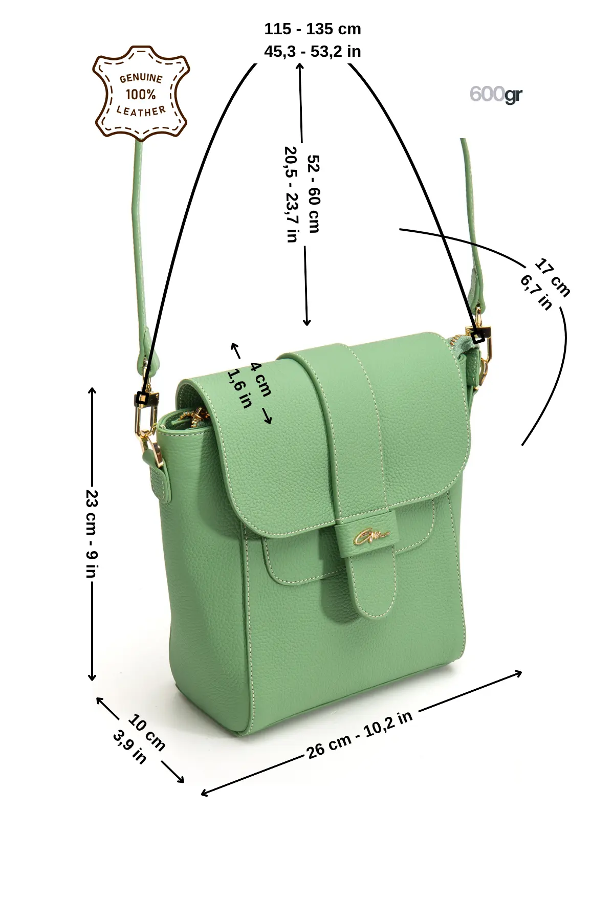 Tegan Hakiki Deri Kadın Omuz Ve Çapraz Çanta Yeşil