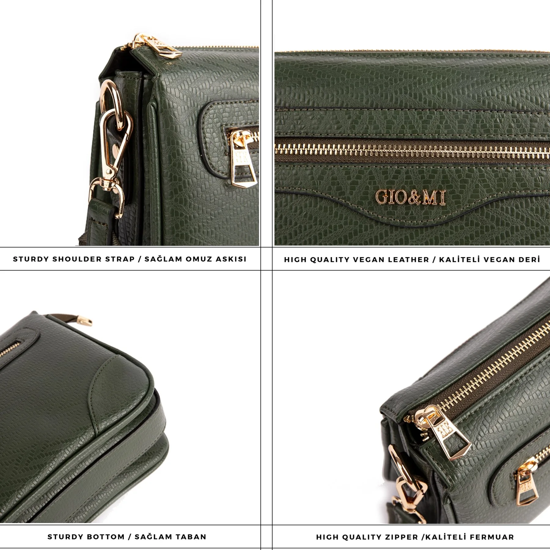 Gio&Mi Zeta (EE181306) çapraz çanta, fonksiyonel tasarımıyla da dikkat çeker. Fermuarlı cebi ve yan bölmeleri ile eşyalarınızı düzenli tutmanızı sağlar. İç kısmında %100 pamuk dokuma kumaş astar kullanılmıştır. 27 cm x 21 cm  x 11 cm ölçülerinde tasarlanan çantanın kullanım hacmi yaklaşık 4 Litredir. Üretim esnasında sağlığa zararlı olan hiçbir ürün kullanılmamıştır.